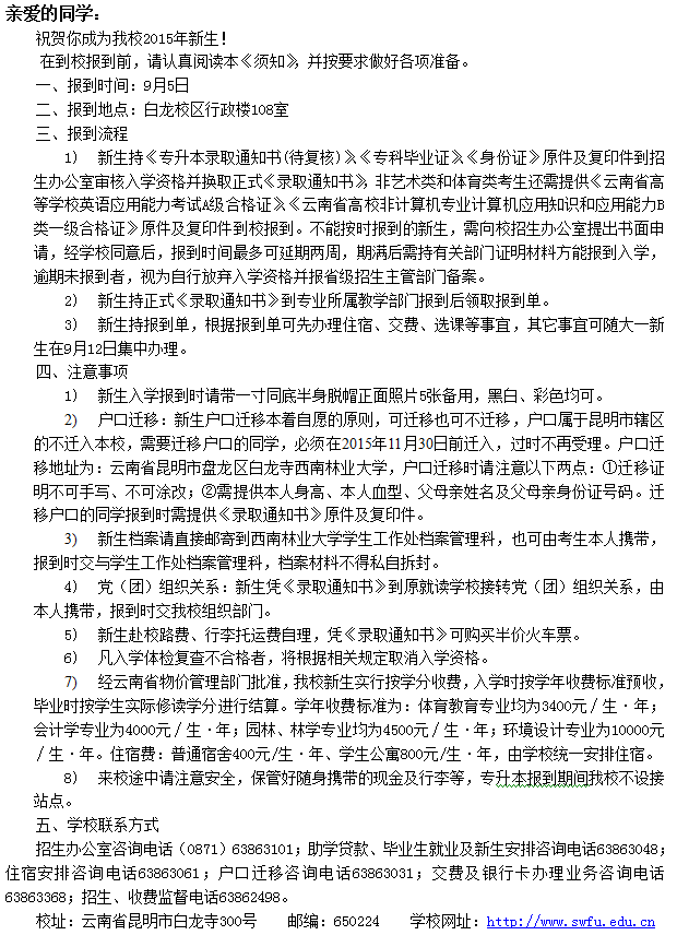 西南林業(yè)大學(xué)2015年“專(zhuān)升本”新生入學(xué)須知