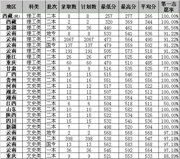 西南林業(yè)大學(xué)2014年全國各省份理工類文史類錄取情況表