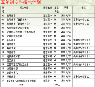 德宏師范高等專科學(xué)校2015年招生計(jì)劃