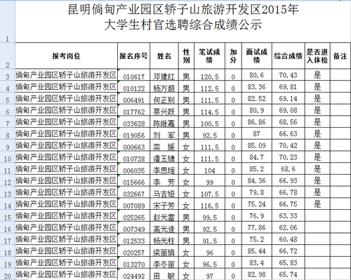 昆明兩區(qū)2015年大學(xué)生村官選聘綜合成績公示