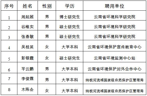 現(xiàn)將省環(huán)境保護廳直屬事業(yè)單位2015年公開招聘工作人員擬聘用人員名單公示如下: