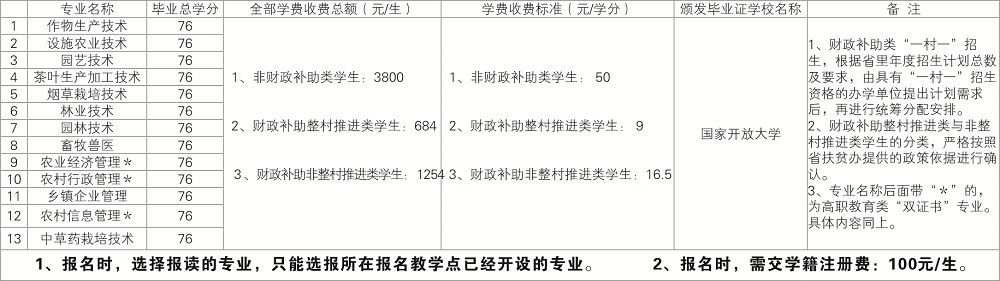 “一村一名大學(xué)生計(jì)劃”專(zhuān)科專(zhuān)業(yè)13個(gè)☆招生對(duì)象:具有高中、職高、中專(zhuān)、技校及以上學(xué)歷的農(nóng)村籍青年。