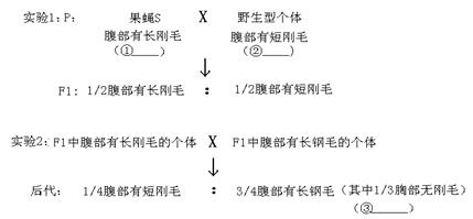 (3)根據(jù)果蠅③和果蠅S基因型的差異,解釋導致前者胸部無剛毛、后者胸部有剛毛的原因: 。
