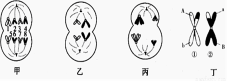 (2)從可遺傳的變異來源看,甲圖中若1與2或1與4的片段發(fā)生交換,則前者屬 ,后者屬于 。乙圖中發(fā)生的變異屬于 ;A圖中DNA含量對應為4的細胞可以是甲、乙、丙中的 細胞。