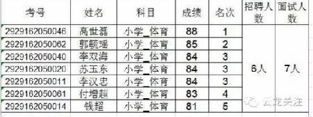 云龍縣2016年公開招聘特崗教師參加面試人員名單