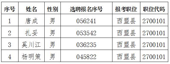 根據(jù)中共普洱市委組織部普洱市人力資源和社會保障局《關(guān)于做好2016年普洱市大學(xué)生村官選聘面試工作的通知》(普組明電〔2016〕31號)有關(guān)規(guī)定,現(xiàn)將普洱市西盟縣2016年選聘大學(xué)生村官進(jìn)入面試人員名單公示如下: