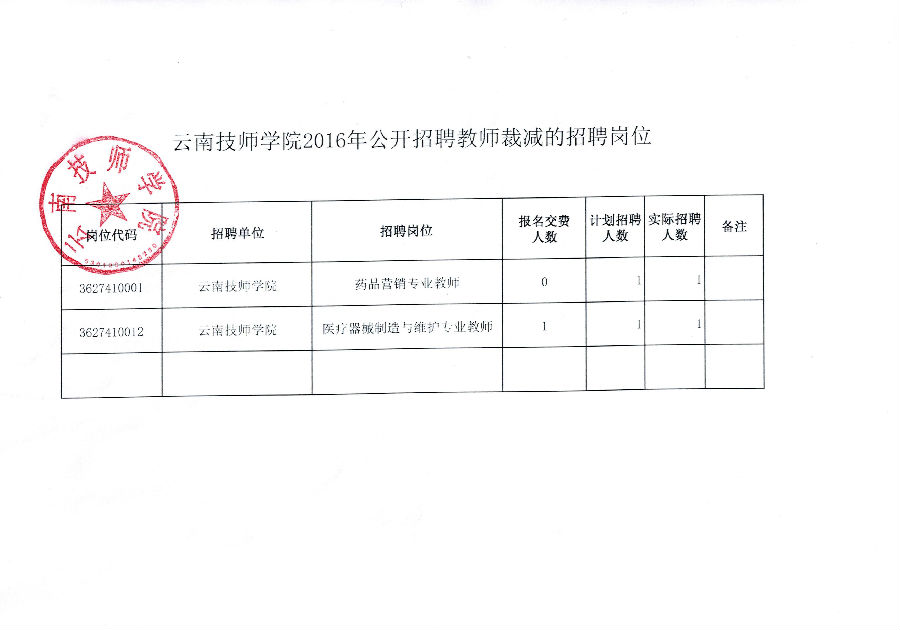 云南技師學(xué)院2016年招聘教師裁減部分招聘崗位公告