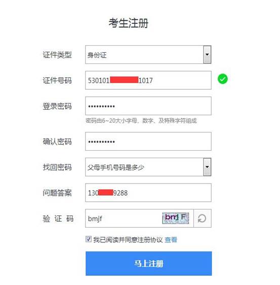 考生憑身份證號注冊用戶,用戶名為考生身份證號。如圖2-2所示:
