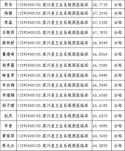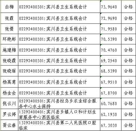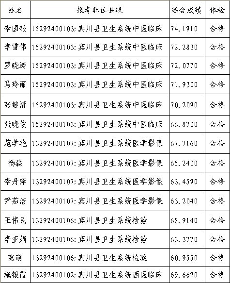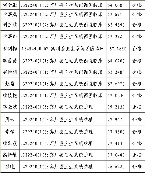 大理州賓川縣2013年事業(yè)單位考試招聘專業(yè)技術(shù)人員擬錄用人員公示