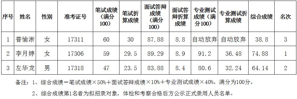 云南民族中學2017年教師招聘綜合成績(教務(wù)員)公示
