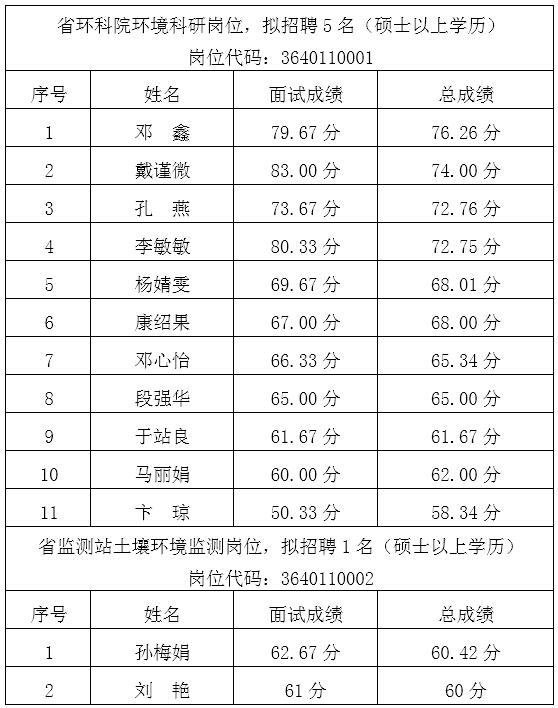 省環(huán)保廳人事處點擊量63現(xiàn)將省環(huán)境保護(hù)廳直屬事業(yè)單位2017年公開招聘工作人員成績公示如下: