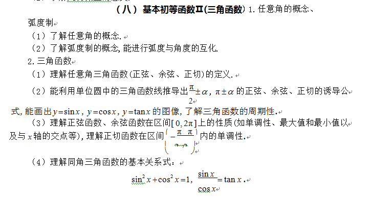 根據普通高等學校對新生文化素質的要求,依據中華人民共和國教育部 2003 年頒布的《普通高中課程方案(實驗)》和《普通高中數學課程標準(實驗)》的必修課程、選修課程系 列 1 和系列 4 的內容,確定文史類高考數學科考試內容.