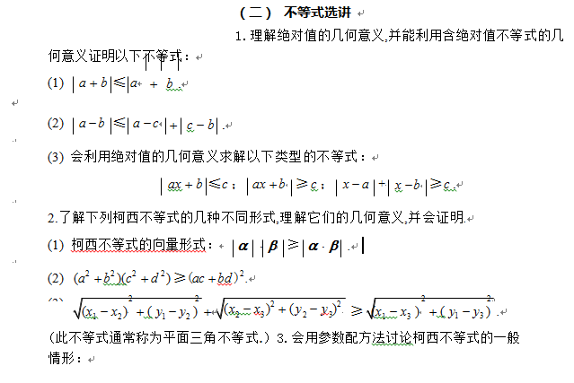 本部分包括必考內(nèi)容和選考內(nèi)容兩部分.必考內(nèi)容為《課程標準》的必修內(nèi)容和選修系 列 2 的內(nèi)容;選考內(nèi)容為《課程標準》的選修系列 4 的 “坐標系與參數(shù)方程”、“不等式選講”等 2 個專題.