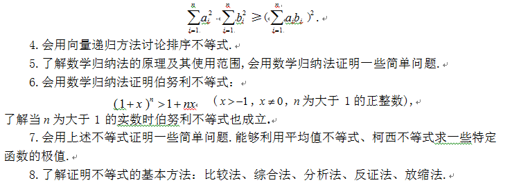 (2)了解間接證明的一種基本方法——反證法;了解反證法的思考過程、特點. 3.數(shù)學(xué)歸納法 了解數(shù)學(xué)歸納法的原理,能用數(shù)學(xué)歸納法證明一些簡單的數(shù)學(xué)命題.