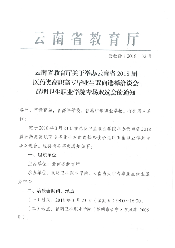 昆明衛(wèi)生職業(yè)學(xué)院專場(chǎng)雙選會(huì)通知