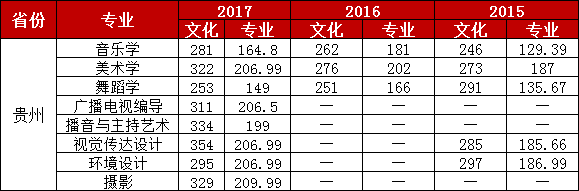 注:攝影專業(yè)認(rèn)可貴州省美術(shù)類統(tǒng)考成績 藝術(shù)類近三年錄取最低分情況