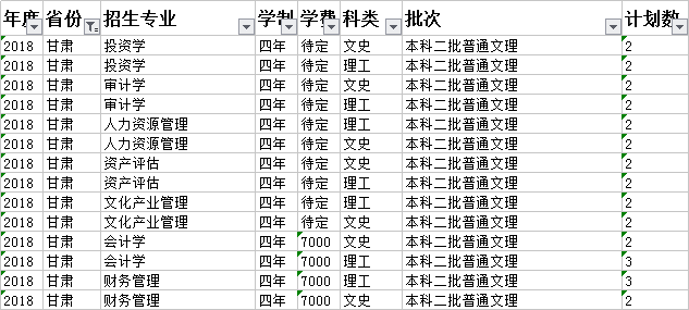 云南財經(jīng)大學2018年本科分省招生計劃表(甘肅?。?/h1>