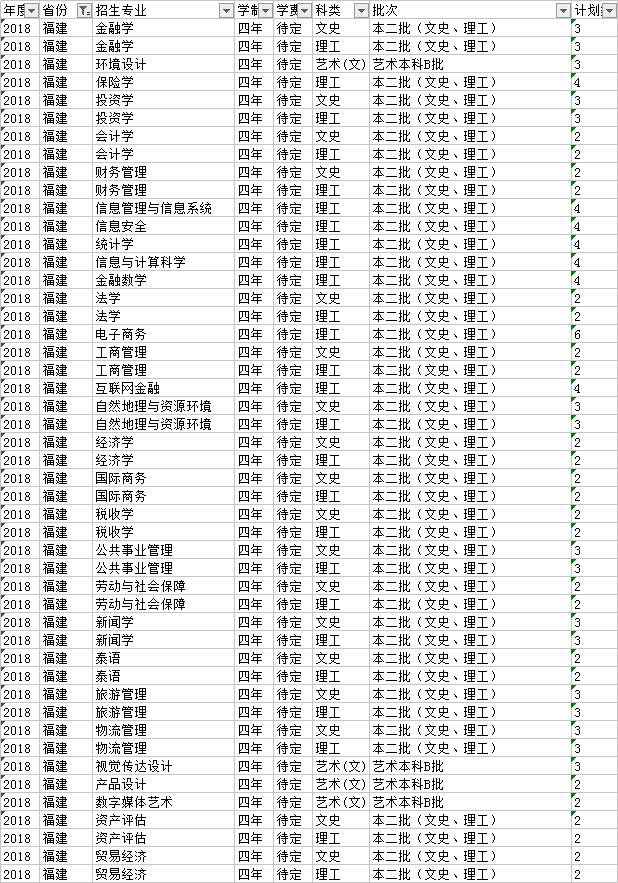 云南財經大學2018年本科分省招生計劃表(福建?。?/h1>