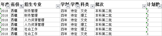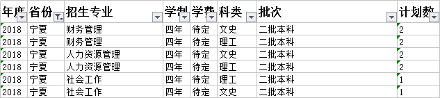云南財(cái)經(jīng)大學(xué)2018年本科分省招生計(jì)劃表(內(nèi)蒙古、寧夏、青海、上海、西藏、新疆)