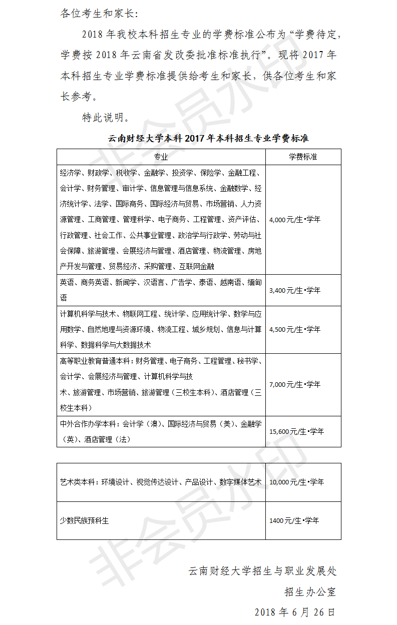 云南財(cái)經(jīng)大學(xué)2018年本科招生專業(yè)學(xué)費(fèi)標(biāo)準(zhǔn)說明