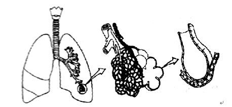 2.下圖為肺的內(nèi)部結(jié)構(gòu)示意圖,圖中所示肺泡外包圍著毛細血管,肺泡壁和毛細血管壁都很薄,由一層上皮細胞構(gòu)成,這有利于 ( )