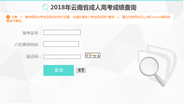 2018年云南省成人高考成績(jī)查詢