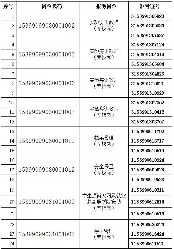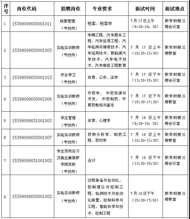 2.報(bào)考實(shí)驗(yàn)實(shí)訓(xùn)教師崗位的考生,須提前兩個(gè)半小時(shí)到達(dá)面試地點(diǎn)做相應(yīng)面試準(zhǔn)備;報(bào)考檔案管理、安全保衛(wèi)、學(xué)生管理和學(xué)生頂崗實(shí)習(xí)及就業(yè)兼高職學(xué)院資助等崗位的考生,須提前30分鐘到達(dá)面試地點(diǎn)做相應(yīng)面試準(zhǔn)備。