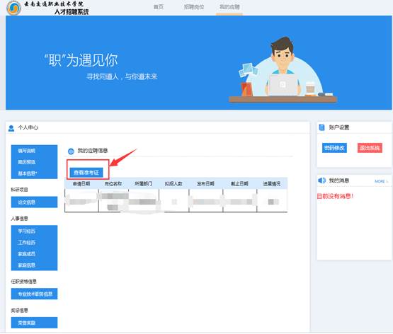 第二步:點擊應聘崗位菜單,進入到簡歷投遞信息頁面