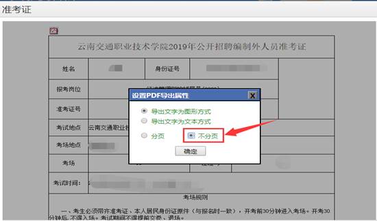 第四步:下載PDF準考證,選擇“不分頁”選項