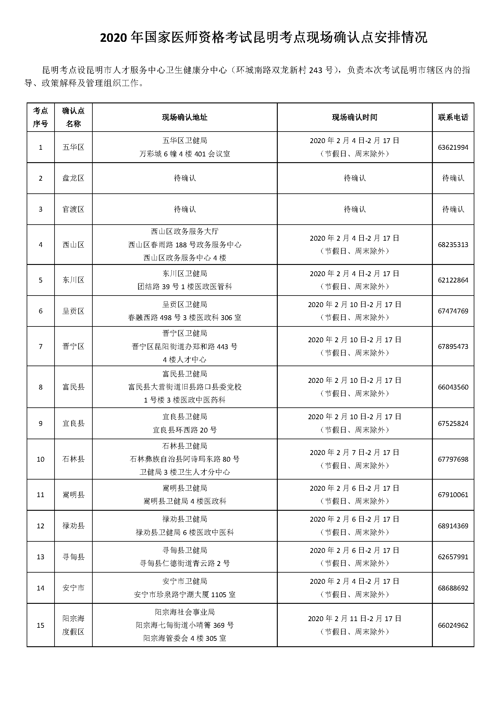 2020年度醫(yī)師資格考試?yán)ッ骺键c(diǎn)現(xiàn)場(chǎng)確認(rèn)點(diǎn)安排通告