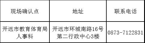 (2)現(xiàn)場確認地點:開遠市教育體育局人事科(開遠市環(huán)城南路16號第二行政中心三樓)。