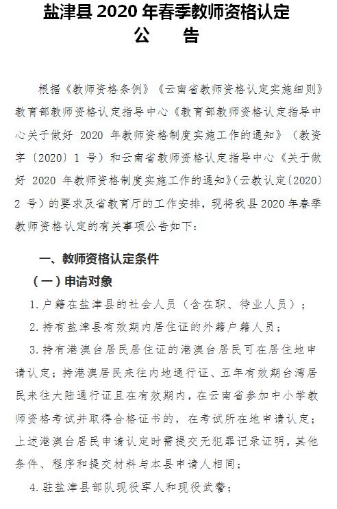 昭通市鹽津縣2020年春季教師資格認(rèn)定公告