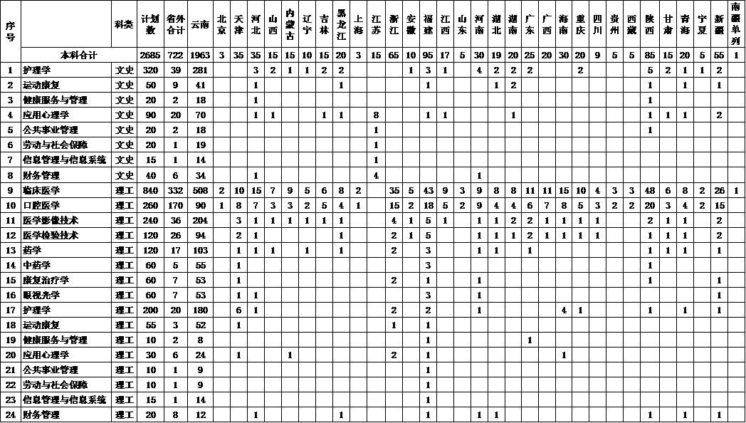 昆明醫(yī)科大學(xué)海源學(xué)院2020年普通高等學(xué)校招生來源計(jì)劃總表(分省-專業(yè)方向)